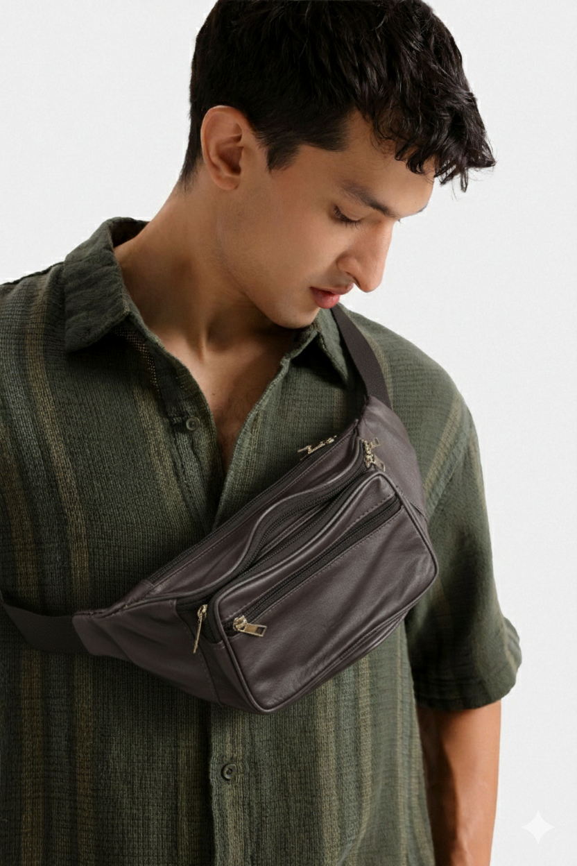 Travel light and look sharp with our leather crossbody waist bags. Functional...